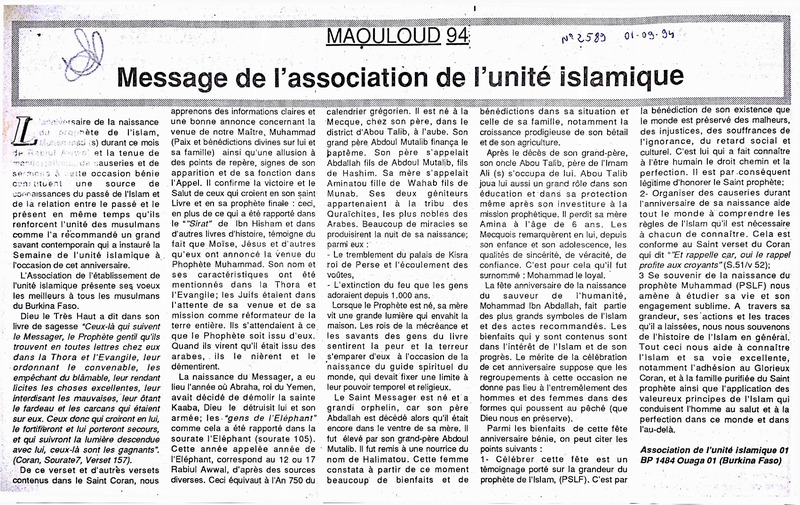 Maouloud 2006 : les musulmans burkinabè cultivent la tolérance