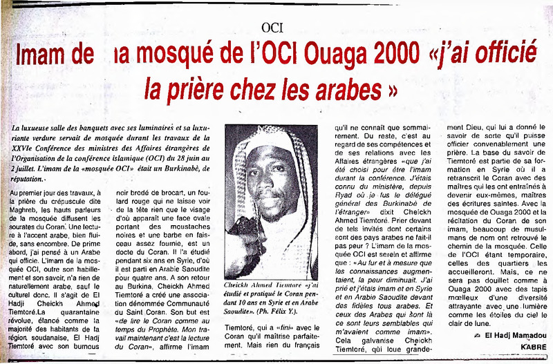 OCI : Imam de la mosquée de l'OCI Ouaga 2000 j'ai officié la prière chez les arabes