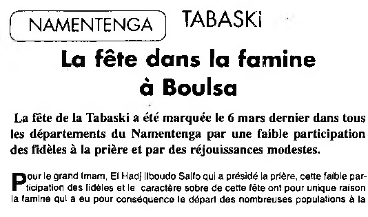 Namentenga. Tabaski : la fête dans la famine à Boulsa