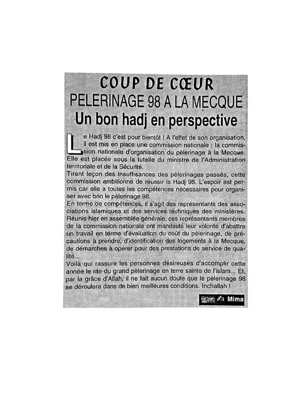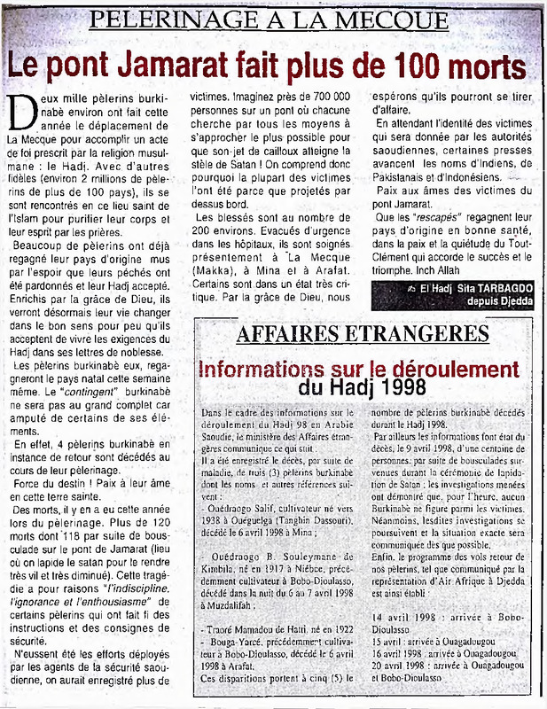Pèlerinage à la Mecque : le pont Jamarat fait plus de 100 morts / Affaires étrangères : informations sur le déroulement du Hadj 1998