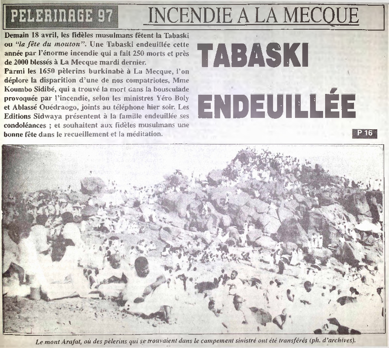 Pèlerinage 97. Incendie à la Mecque : Tabaski endeuillée
