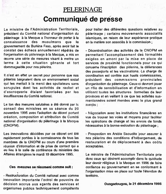 Pèlerinage 2012 à La Mecque : 956 pèlerins partis pour les lieux saints via Bobo-Dioulasso