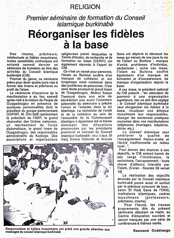 Premier séminaire de formation du Conseil islamique burkinabè : réorganiser les fidèles à la base