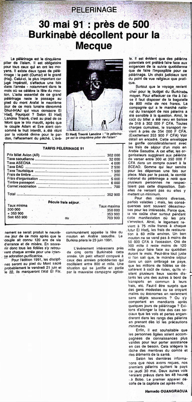 Pèlerinage. 30 mai 91 : près de 500 Burkinabè décollent pour la Mecque