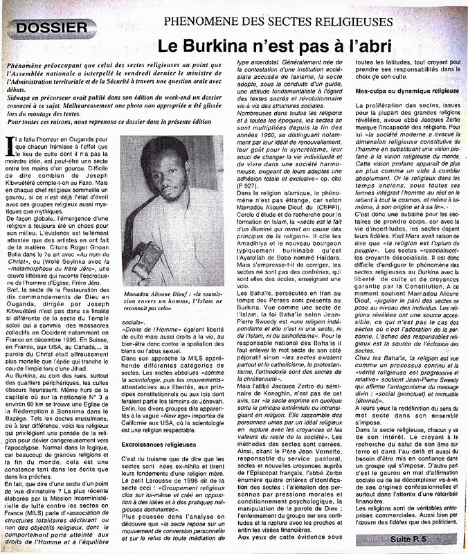 Phénomène des sectes religieuses : le Burkina n'est pas à l'abri / Comment reconnaître une secte? L'approche de l'abbé Jacques Zerbo