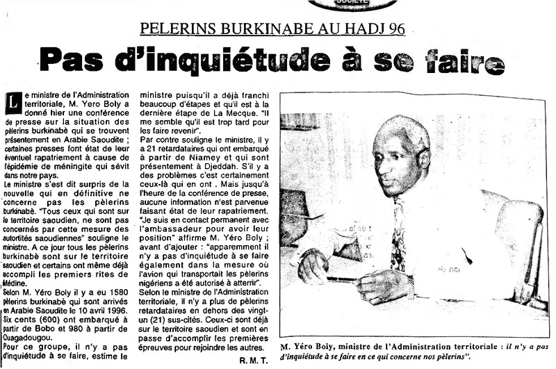 Pèlerins burkinabé au Hadj 96 : pas d'inquiétude à se faire