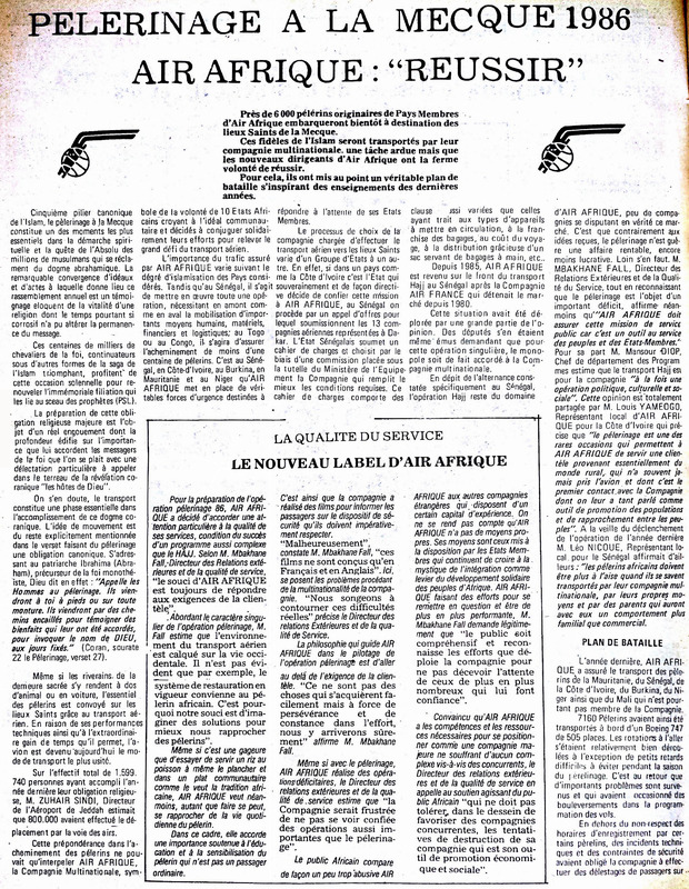 Pèlerinage à la Mecque 1986. Air Afrique : "Réussir"