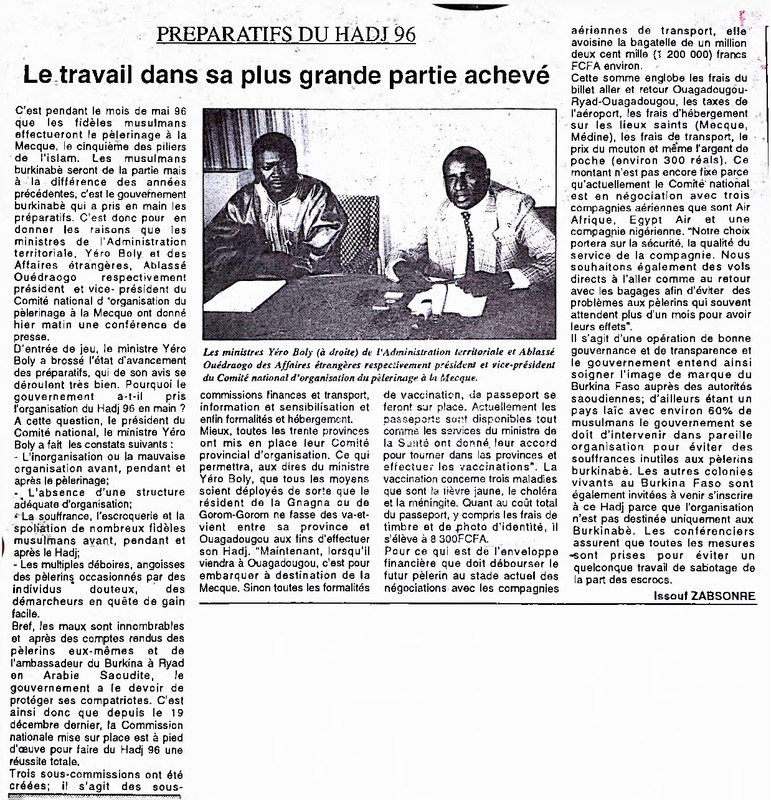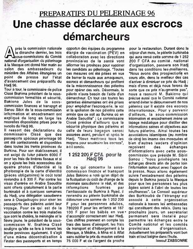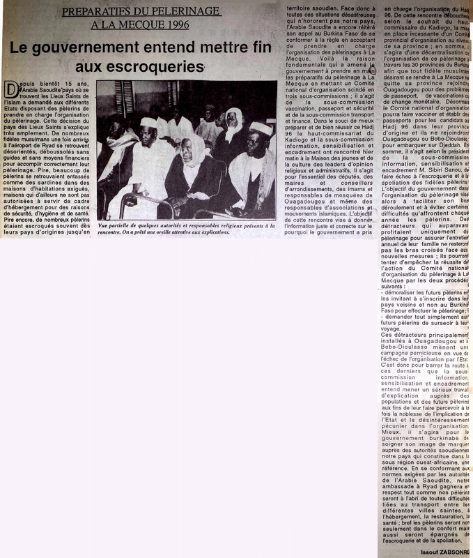 Préparatifs du pèlerinage à la Mecque 1996 : le gouvernement entend mettre fin aux escroqueries