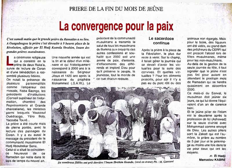 Prière de la fin du mois de jeûne : la convergence pour la paix
