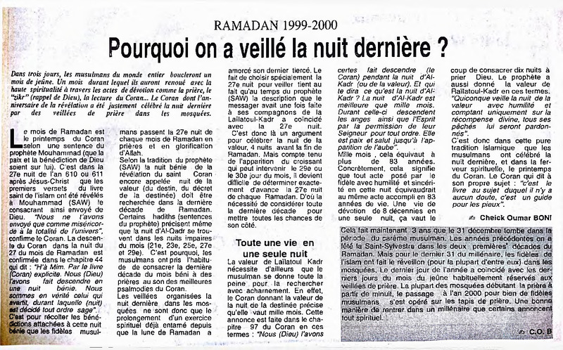Ramadan 1999-2000 : pourquoi on a veillé la nuit dernière?
