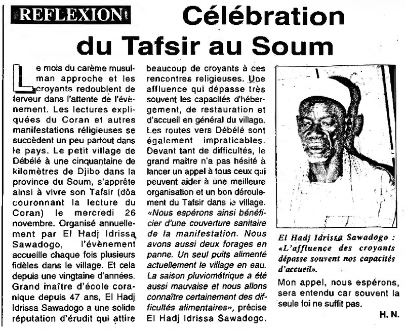 Réflexion : célébration du Tafsir au Soum