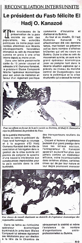 Réconciliaiton intersunnite : le président du Faso félicite El Hadj O. Kanazoé