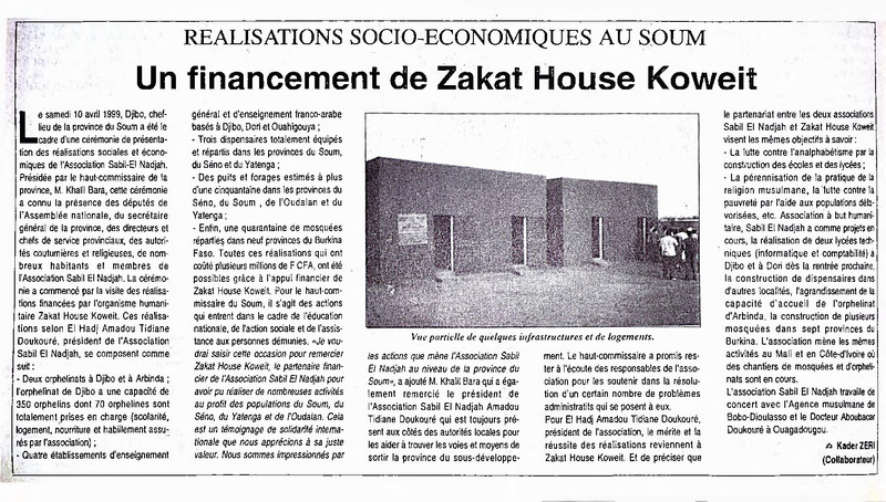 Réalisations socio-économiques au Soum : un financement de Zakat House Koweit