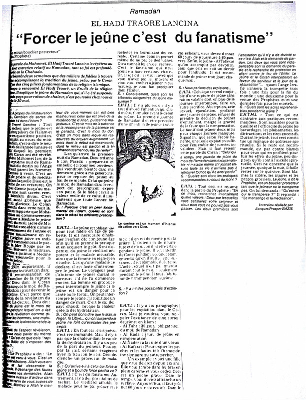 Ramadan. El Hadj Traoré Lancina : "Forcer le jeûne c'est du fanatisme"