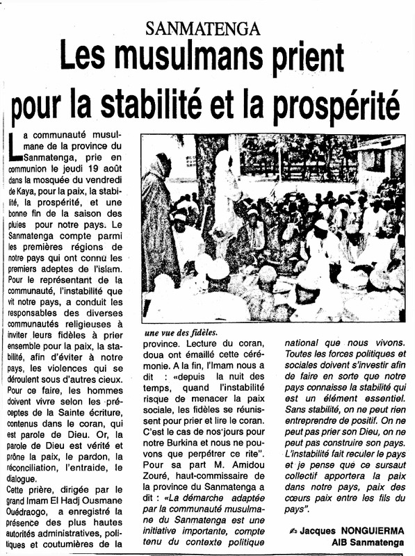 Sanmatenga : les musulmans prient pour la stabilité et la prospérité