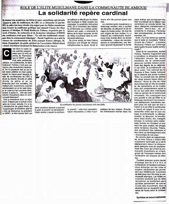 Rôle de l'élite musulmane dans la communauté islamique : la solidarité repère cardinal