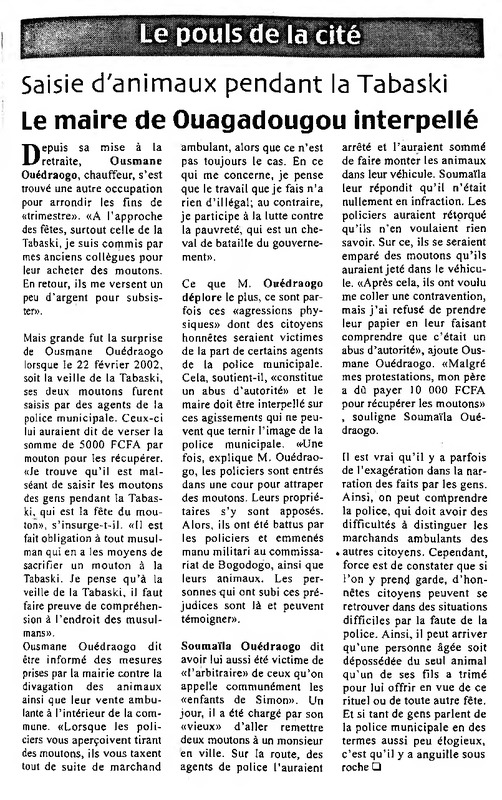 Saisie d'animaux pendant la Tabaski : le maire de Ouagadougou interpellé