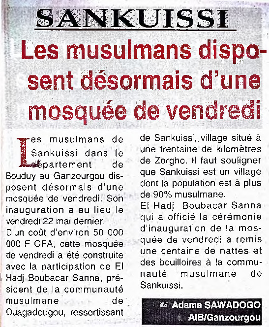 Sankuissi : les musulmans disposent désormais d'une mosquée de vendredi