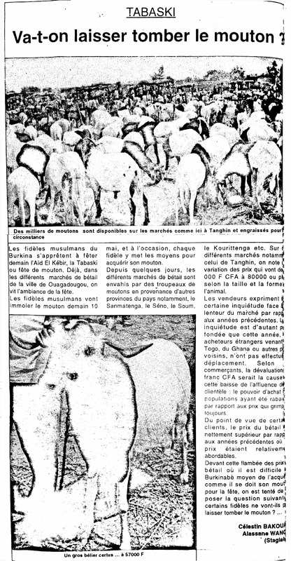 Tabaski 2012 : les prix des moutons varient de 20 000 à 170 000 f cfa à Bobo-Dioulasso