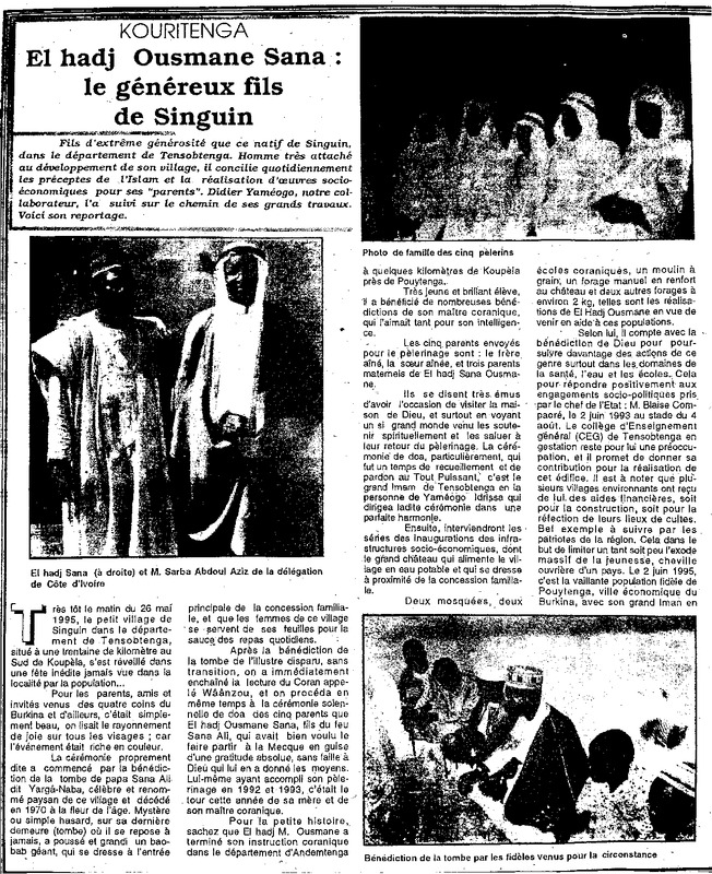 Kouritenga. El hadj Ousmane Sana : le généreux fils de Singuin