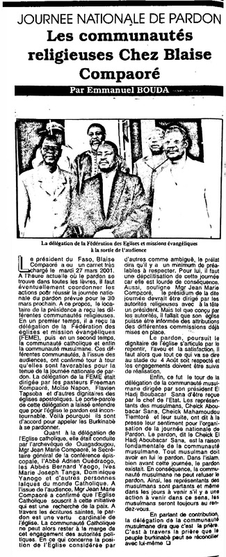 Journée nationale de pardon : les communautés religieuses chez Blaise Compaoré
