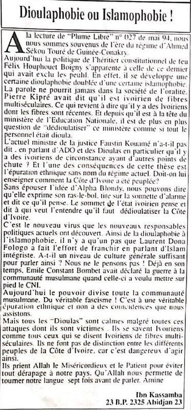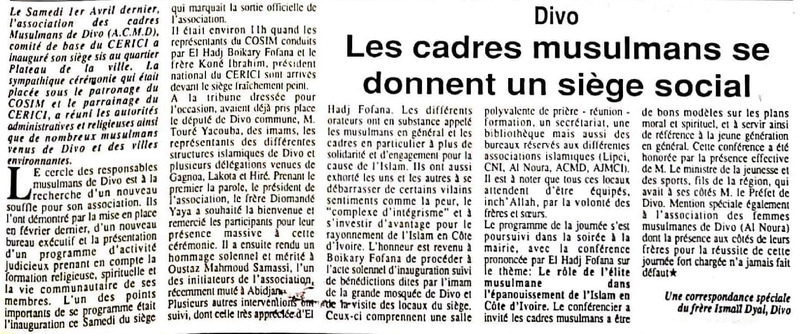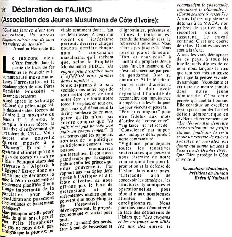 Déclaration de l'AJMCI (Association des Jeunes Musulmans de Côte d'ivoire) :