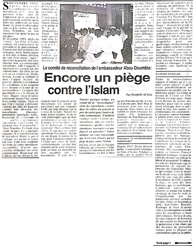 Comité de réconciliation de l'Ambassadeur Abou Doumbia : encore un piège contre l'Islam !