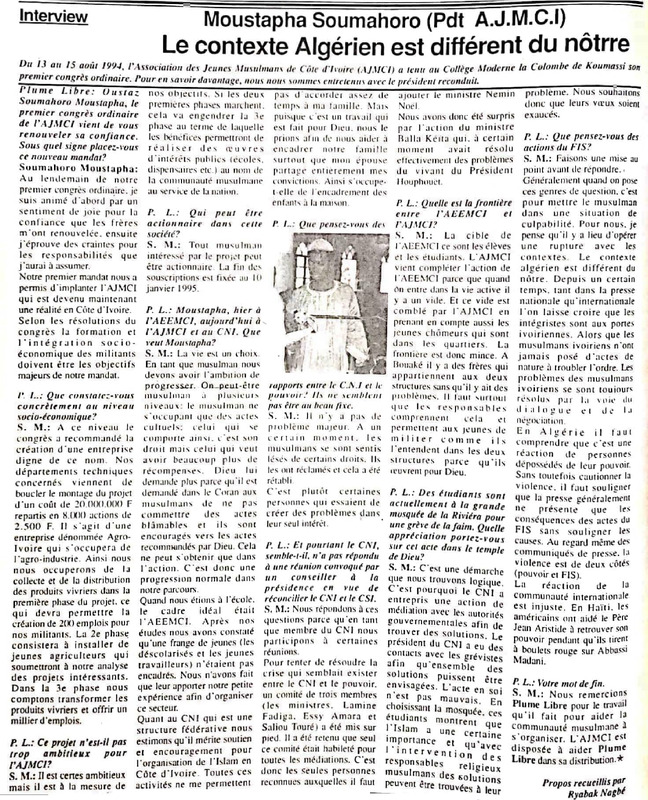 Interview. Moustapha Soumahoro (Pdt A.J.M.C.I) : le contexte Algérien est différent du nôtre