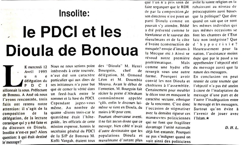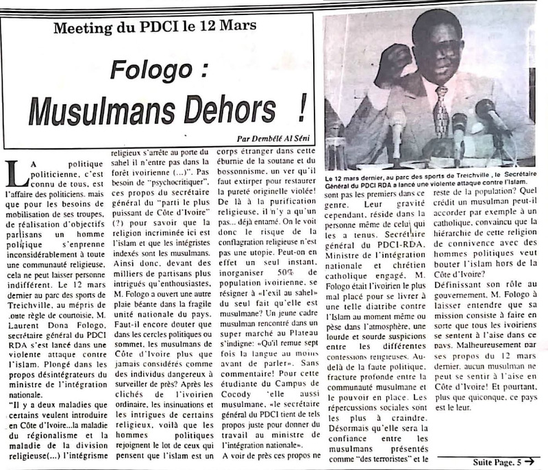 Meeting du PDCI le 12 Mars. Fologo : Musulmans Dehors !