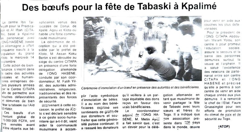 Des dons de l'Egypte à l'Union musulmane du Togo