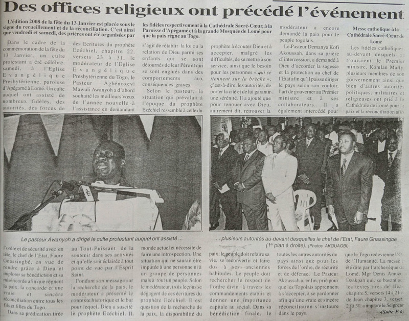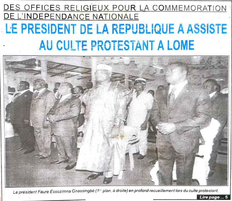 Des offices religieux pour la commémoration de l'indépendance nationale : le président de la République a assisté au culte protestant à Lomé