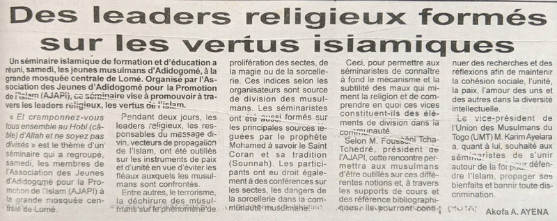 Des imams et prédicateurs du Togo se forment à Kpalimé
