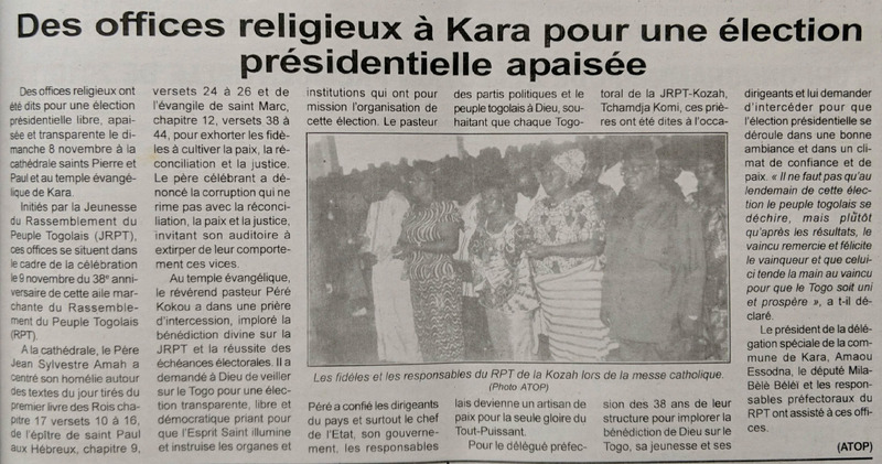 Des offices religieux à Kara pour une élection présidentielle apaisée