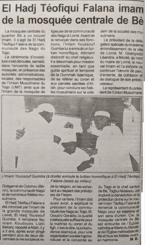 El Hadj Téofiqui Falana imam de la mosquée centrale de Bè