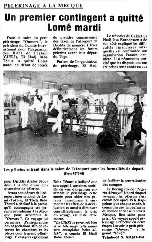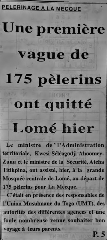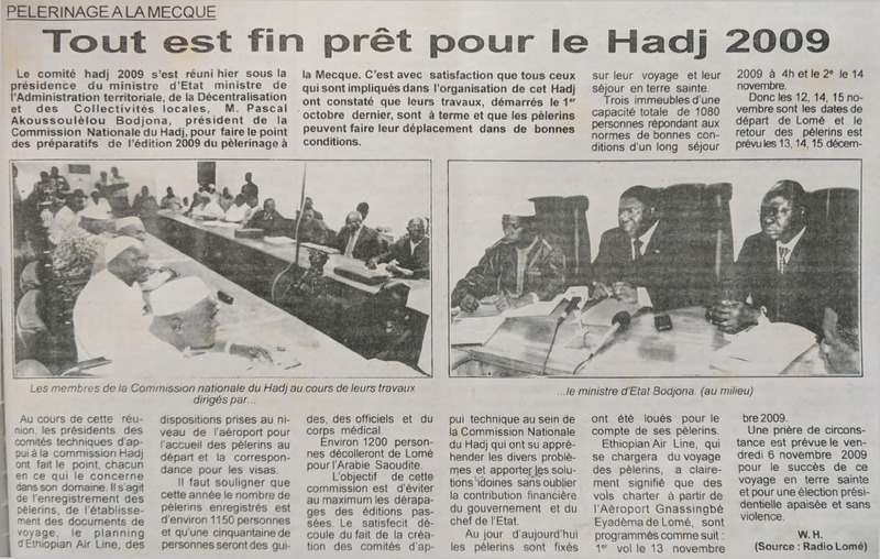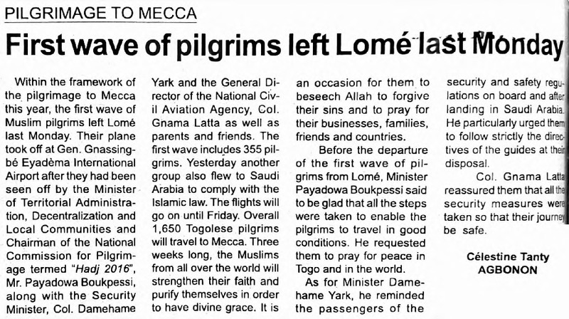 Pilgrimage to Mecca : first wave of pilgrims left Lomé last Monday