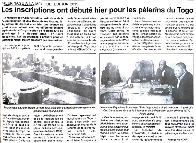 Pèlerinage à la Mecque, édition 2015 : les inscriptions ont débuté hier pour les pèlerins du Togo
