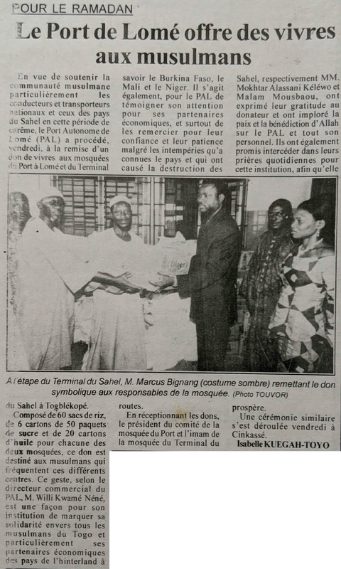 Pour le Ramadan : le Port de Lomé offre des vivres aux musulmans