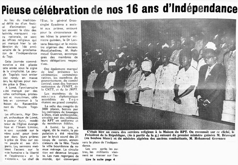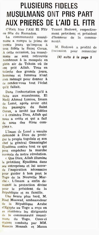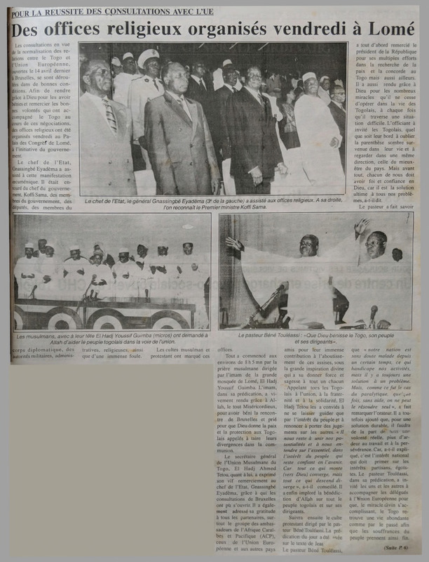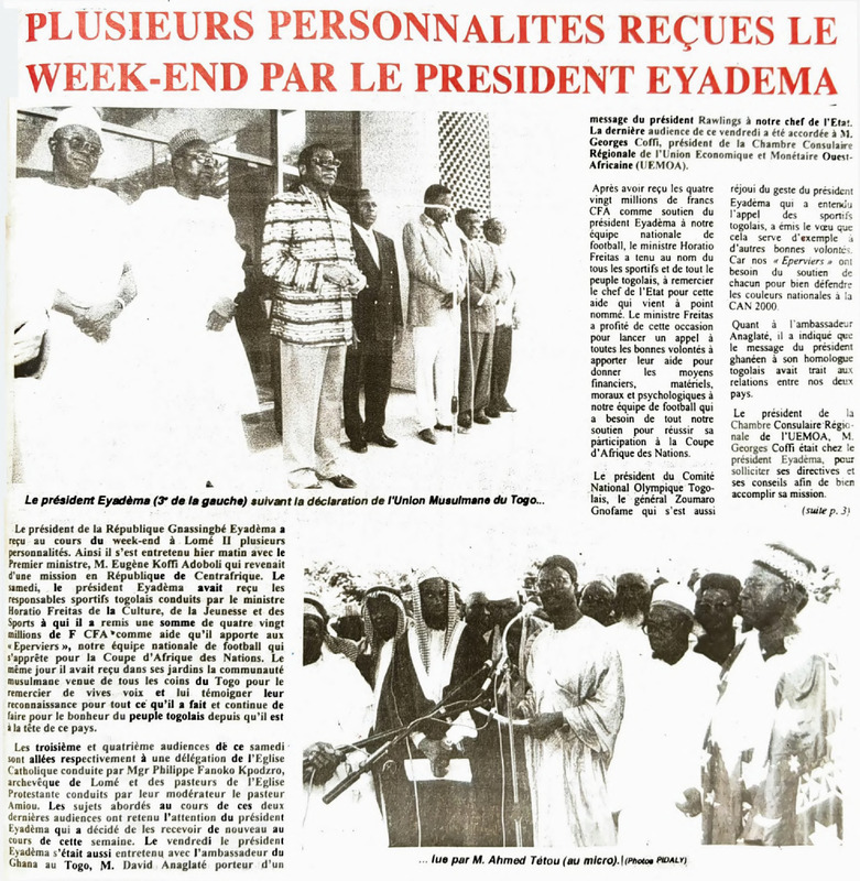 Plusieurs personnalités reçues le week-end par le président Eyadèma / Déclaration de l'Union Musulmane du Togo