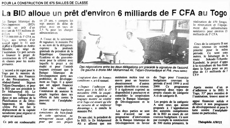 Pour la construction de 675 salles de classe : la BID alloue un prêt d'environ 6 milliards de F CFA au Togo