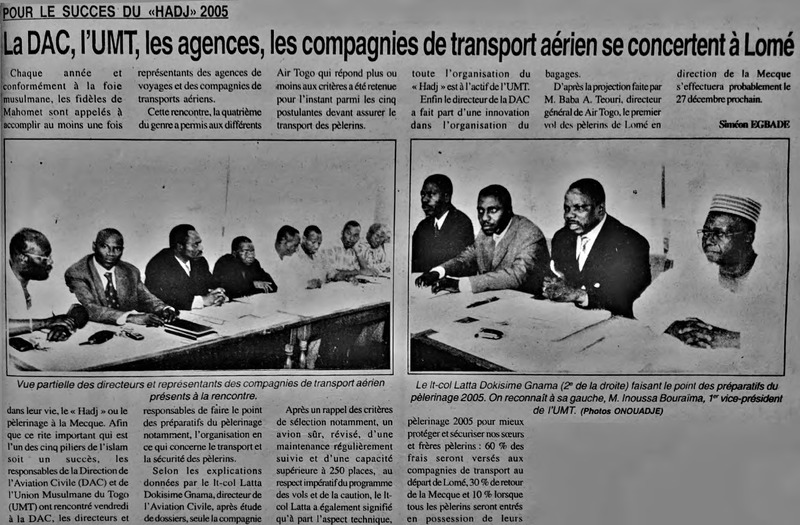 Pour le succès du "hadj" 2005 : la DAC, l'UMT, les agences, les compagnies de transport aérien se concertent à Lomé
