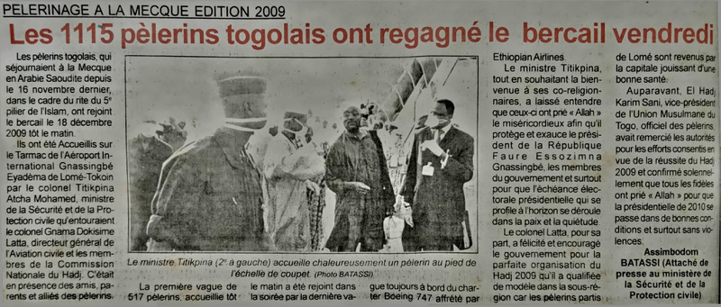 Pèlerinage à la Mecque édition 2009 : les 1115 pèlerins togolais ont regagné le bercail vendredi
