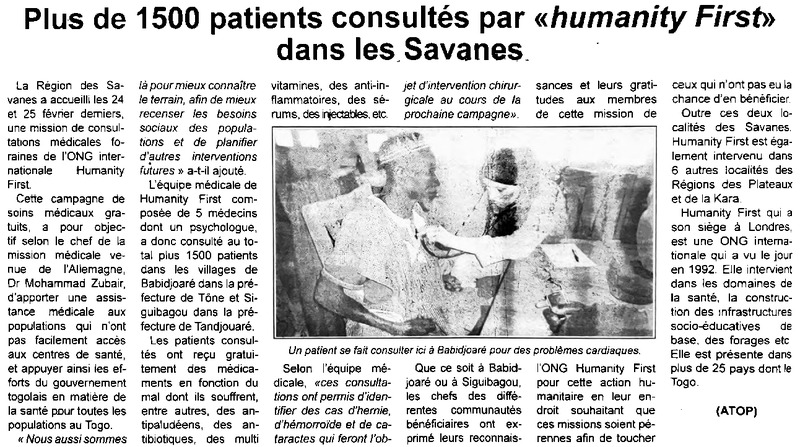 Plus de 1500 patiens consultés par "humanity First" dans les Savanes