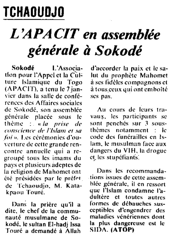 Tchaoudjo : l'APACIT en assemblée générale à Sokodé
