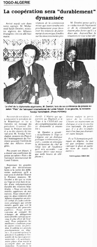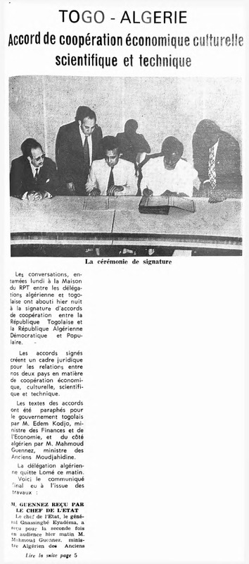 Togo-Algérie : accord de coopération économique culturelle scientifique et technique
