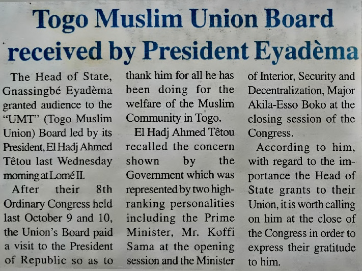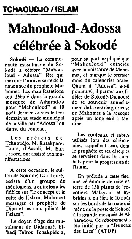 Tchaoudjo / Islam : Mahouloud-Adossa célébrée à Sokodé