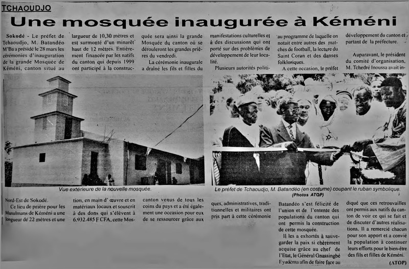 Tchaoudjo : une mosquée inaugurée à Kéméni