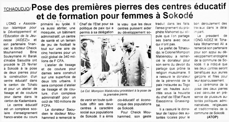 Tchaoudjo : pose des premières pierres des centres éducatifs et de formation pour femmes à Sokodé