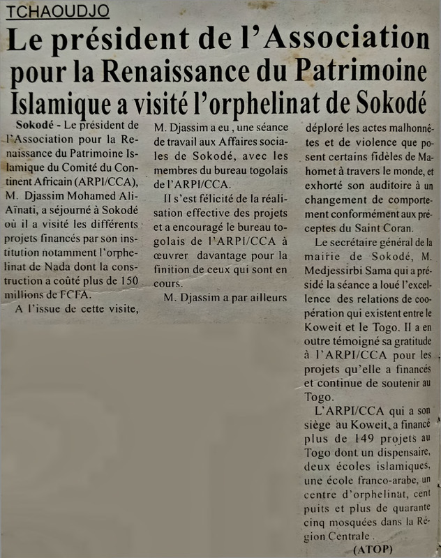 Tchaoudjo : le président de l'Association pour la Renaissance du Patrimoine Islamique a visité l'orphelinat de Sokodé