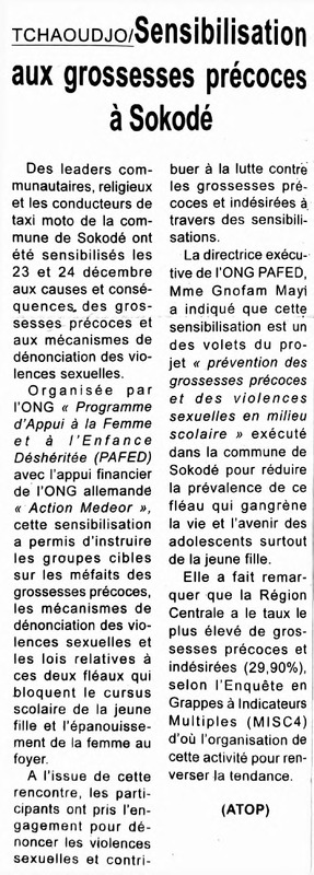 Tchaoudjo : sensibilisation aux grossesses précoces à Sokodé