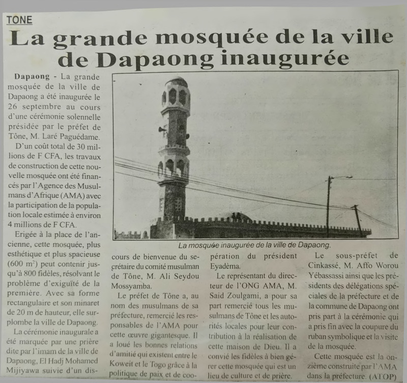 Tône : la grande mosquée de la ville de Dapaong inaugurée